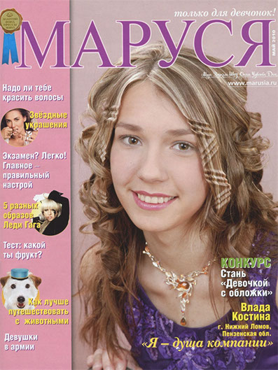 Журнал для девочек-подростков. Журнал состоит из таких интересных разделов как «Мода», «Зеркало», «Шоу», «Стиль», «Чувства», «Дом». В каждом номере журнала можно найти ответы на вопросы, касающиеся переживаний переходного возраста, консультации профессиональных психологов, а также интересные кулинарные рецепты, новости в мире молодежной моды, советы по обустройству интерьера, гороскоп и многое-многое другое.